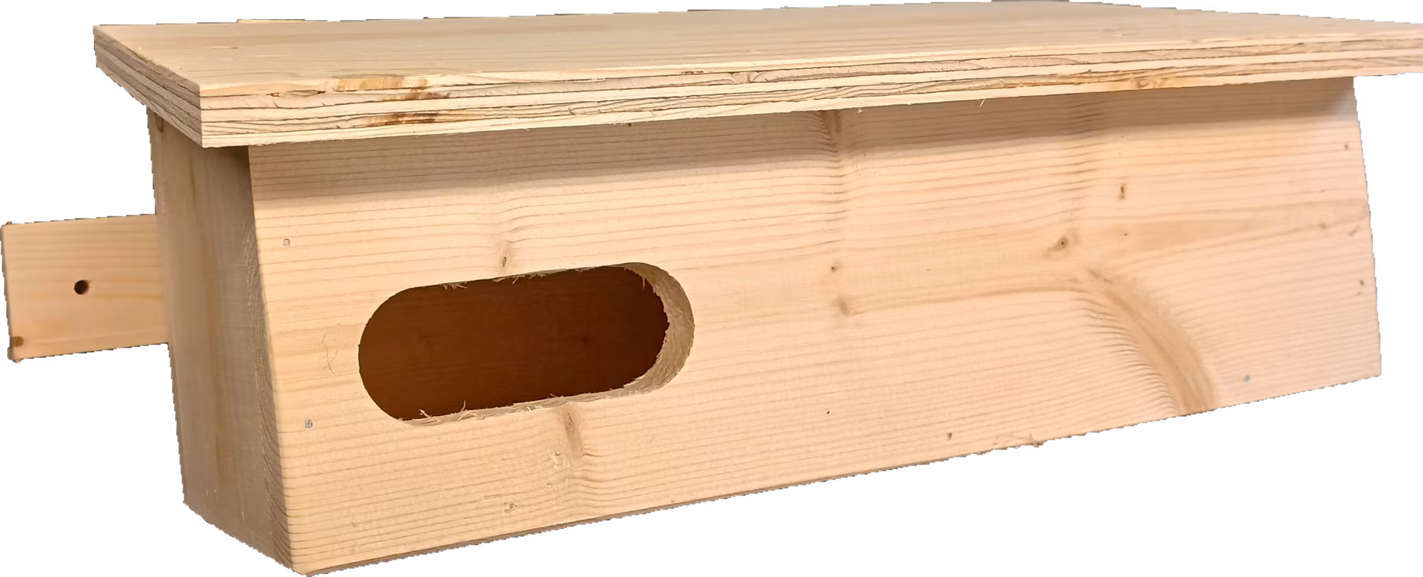 Denna holk är tillverkad av obehandlat trä och har ett ingångshål på 70x30 mm, perfekt optimerat för tornseglare. På baksidan finns en praktisk bräda för enkel montering på väggen. Holken har en öppning av taket för smidig rengöring(lossa två skruvar).